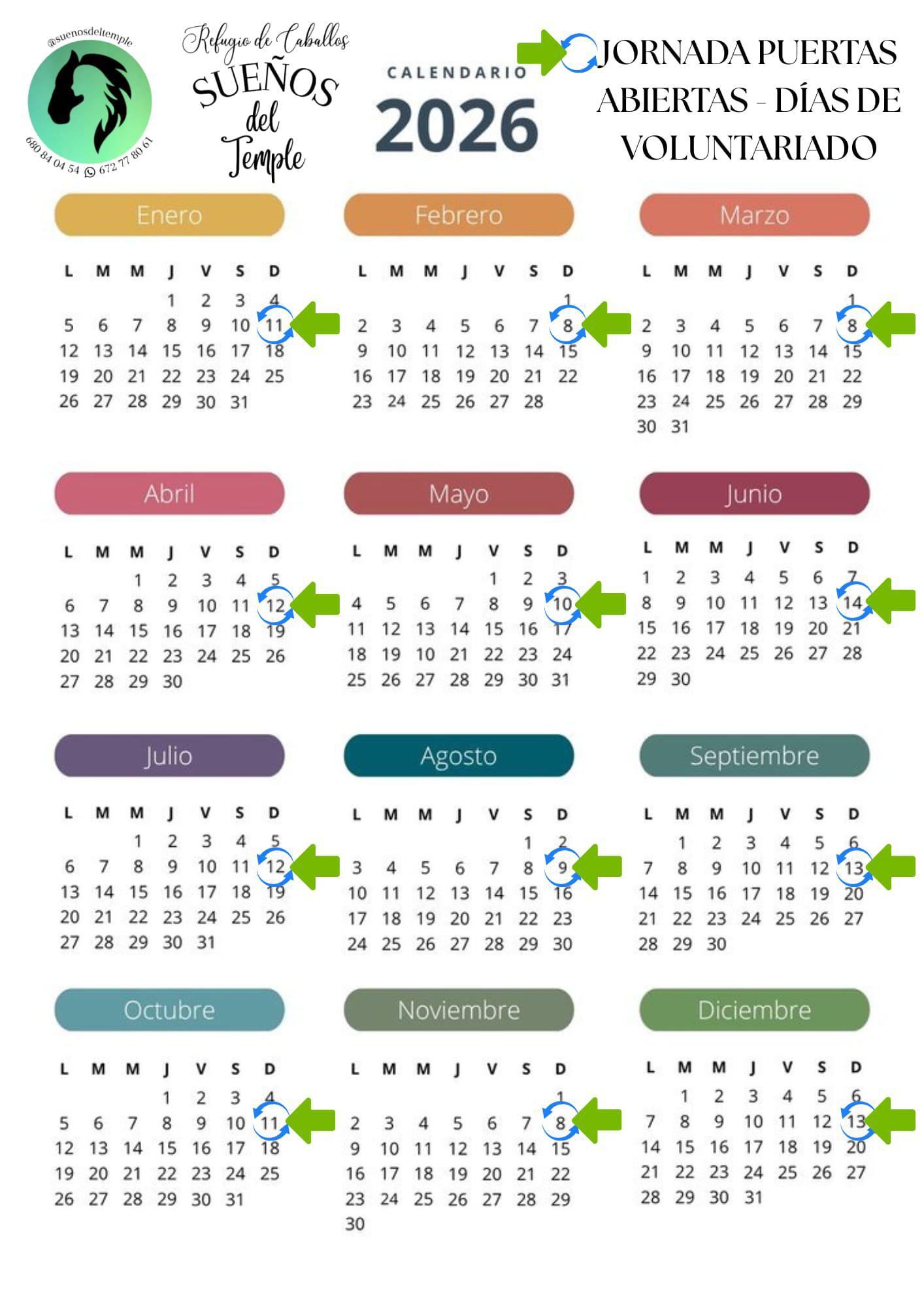 Todos los segundos domingos de cada mes📆, podréis venir a visitarnos y echarnos una mano. (Si hubiera algún cambio, lo informaríamos con tiempo)